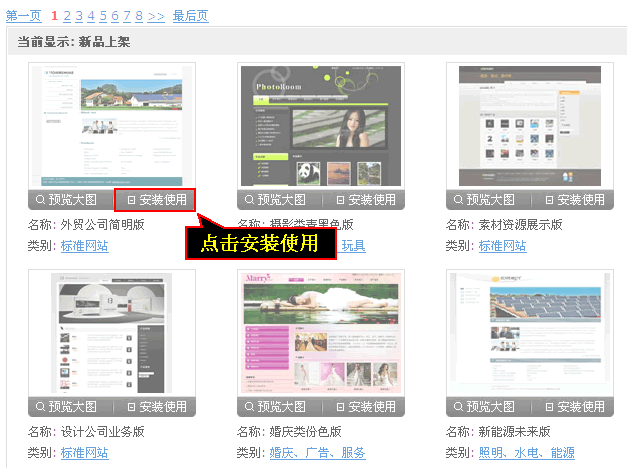 1、選中模板后點擊“安裝使用”
