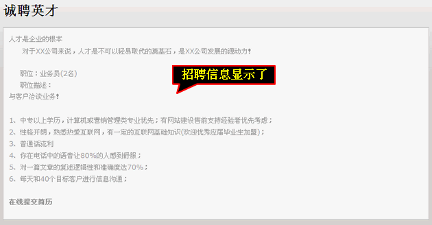 點擊“預覽”后可以查看招聘信息