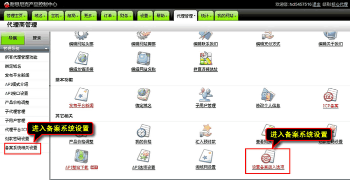 從以上兩個連接中的任何一個都可以進入到備案系統設置界面