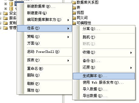 右鍵-->任務(wù)-->生成腳本。