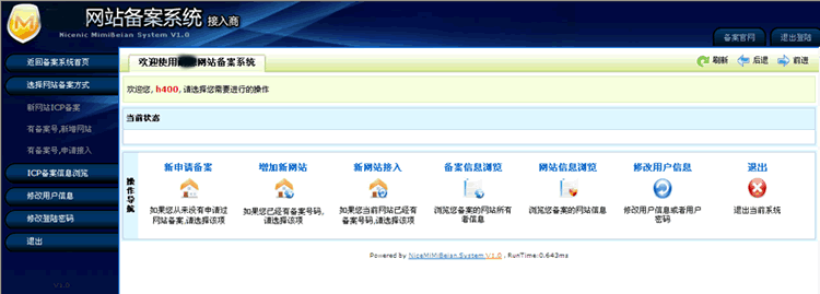 輸入備案用戶名和密碼即可進入到備案系統.三種方式進入的備案系統界面都一樣.如下圖: